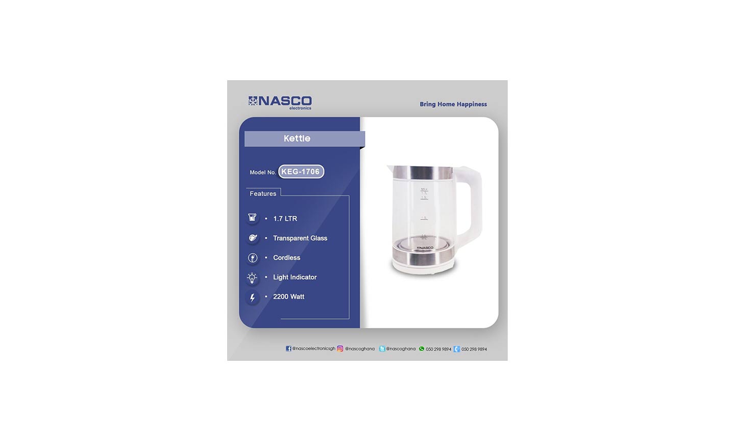 Be the first to review “Nasco Kettle 1.7 Litres Transparent Glass Cordless KEG1706”